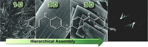 Y. Wang, J. Liu, M. Mecklenburg, H. D. Tran, X. N. Guan, B. C. Regan, D. C. Martin, R. B. Kaner. “Morphological and Dimensional Control via Hierarchical Assembly of Doped Oligoaniline Single Crystals.” J. Am. Chem. Soc. 2012, 134, 22, 9251-9262.